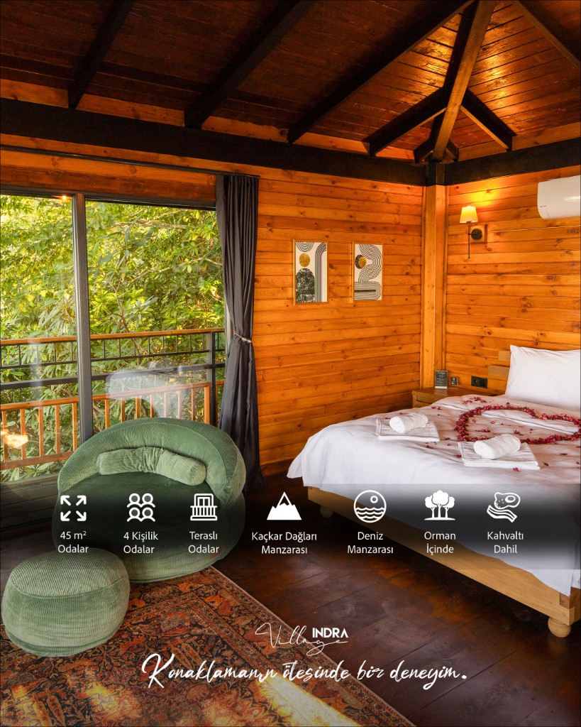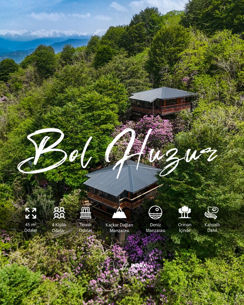 In Rize Pazar, wo Wald, Meer und Kaçkar aufeinandertreffen, bietet Indra Village einen ruhigen Boutique-Aufenthalt: 6 Zimmer, bis zu 24 Gäste. Unser 60-Platz-Restaurant und Café für Gruppen und Events. Umgeben von Hainbuche, Kastanie und Rhododendron („Komar“), besonders blühend Mai–Juni. Komfort und Ruhe stehen im Mittelpunkt — für Gäste, die dem Stadtrhythmus entkommen möchten.
